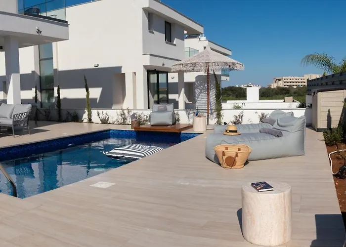 Vila Nesea Seaside Luxury Escape se nachází ve čtvrti Pernera ve městě Paralimni a je vybaveno terasou s výhledem na bazén. Plážová zařízení v Vila Nesea Seaside Luxury Escape Protaras zahrnují slunečníky.